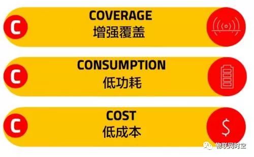 NB-IoT和eMTC同属于蜂窝物联网,也同时具备了蜂窝物联网的“3C”特征: •Coverage 增强覆盖 •Consumption 低功耗 •Cost 低成本