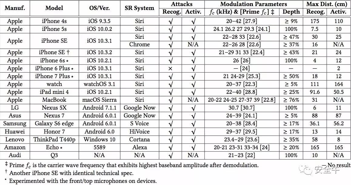 利用麦克风电路的非线性特征,该调制低频语音指令可被成功解调、恢复,最重要的是,可被语音识别系统解释。