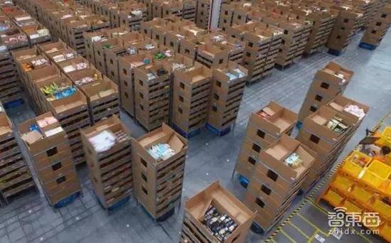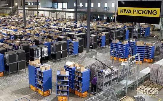 亚马逊仓库内机器人在工作