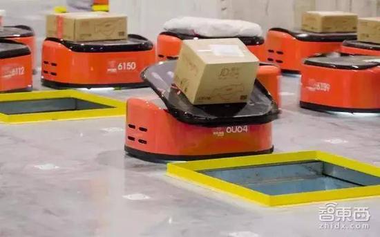 京东无人仓内分拣机器人在工作