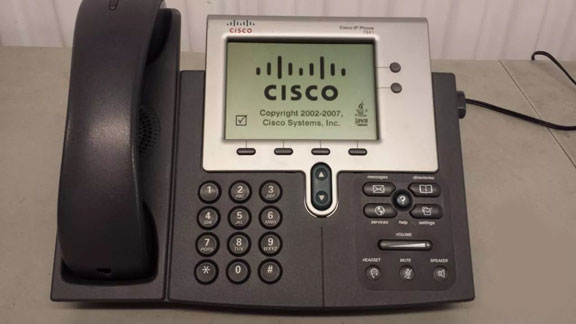我们来看Cisco电话,分别来看,看上去不像电话而像电脑。他有硬盘、屏幕、拨号盘,同时还有很脆弱的软件。
