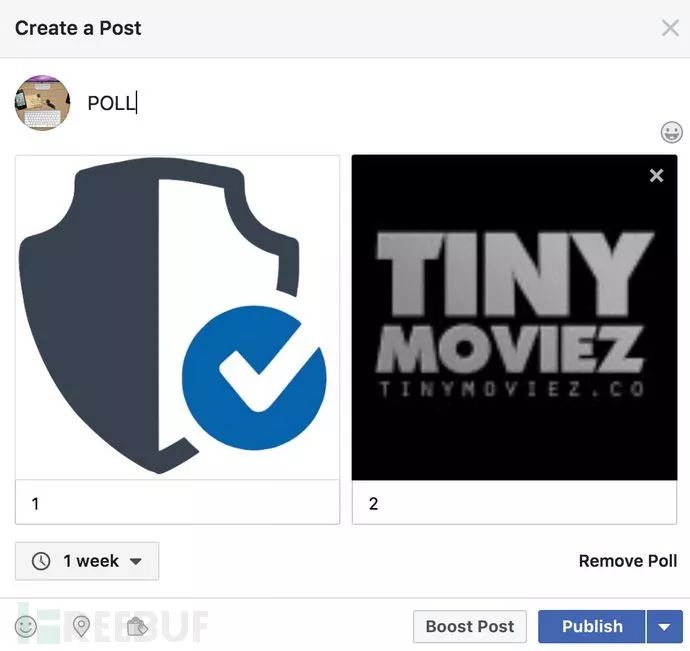 Facebook于11月初推出了这项新的投票询问功能,当用户在询问朋友和网友意见时,可以配上图片甚至GIF动画,该功能对于那些有选择困难症的人来说可能非常有用,如正为吃什么、买什么而烦恼时,可以马上拍张照片或分享GIF询问其他人。整个漏洞过程大概是这样的: