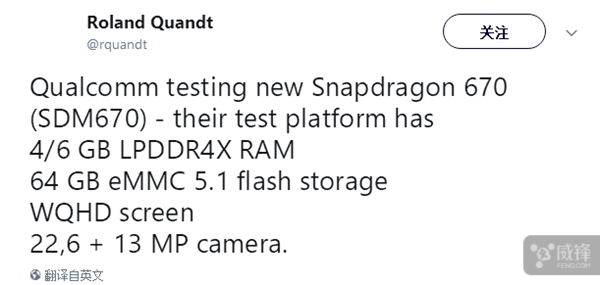 虽然说起高通大家最先想到的都是骁龙835、骁龙845这些旗舰,但是骁龙600系列其实才是最主要的出货力量,近年来包括骁龙625、骁龙653和骁龙660在内的多款处理器在市场上取得了难以想象的成绩,所以高通自然也对这一系列投入了更多精力,就拿最近的骁龙660来说,性能指标就直逼骁龙820,就差没给它用 10nm 制程了,而今天,骁龙670也浮出了水面。