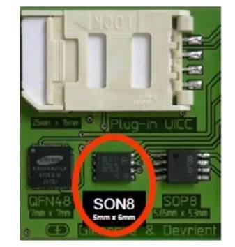 eSIM是指Embedded-SIM(嵌入式SIM卡),本质上还是一张SIM卡,只不过它变成了一颗SON-8的封装IC,直接嵌入到电路板上。