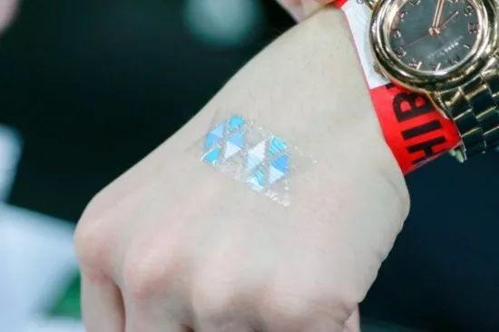 除此之外,欧莱雅还展示了一种用来检测紫外线情况的贴画,没有电子结构,应该是通过紫外线照射来产生一定化学变化,然后再通过手机APP拍摄贴画便可识别出户外紫外线情况。