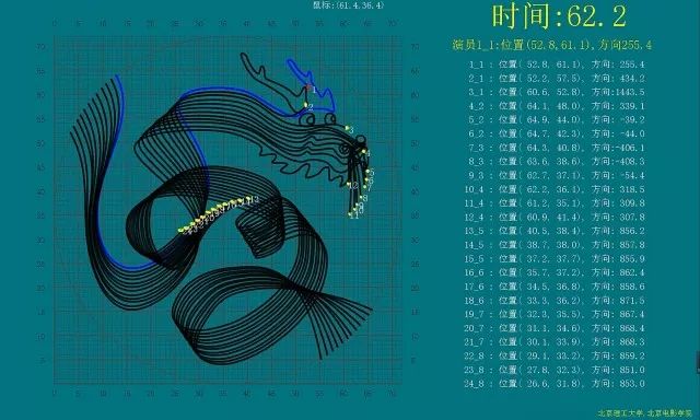 针对“北京8分钟”参演要素多、创意过程复杂、排练关联度高的特点,北理工虚拟视觉团队利用影视虚拟制作技术和数字表演与仿真技术,专门创新研发了文艺表演预演系统和训练彩排与数字验证系统。这两套系统能够根据表演创意方案,将整场文艺表演的过程全部仿真,较好地保证了前期创意设计与现场排练工作的顺利进行,得到了导演组和参加表演团队的一致好评。