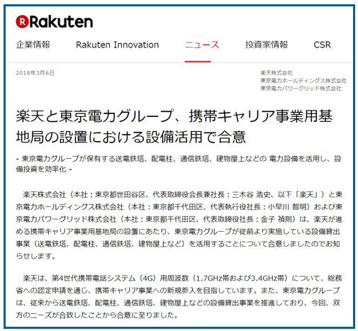 无独有偶,3月5日这天,在岛国日本同样发生了一件震惊通信界的大事——日本的“阿里巴巴”乐天宣布与东京电力合作,进军移动运营商。