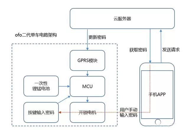 GPRS锁能做的功能很多,不过ofo二代可能出于“看起来像智能锁”、“省电”、“省流量费”、“解锁更快速”、“电源稳定性更高”这几条原因,只通过GPRS来更新密码数据。让我们来解析一下其设计思路: