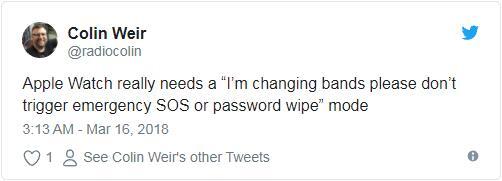 如果你在Twitter上搜索相关内容,会发现已经有不少用户吐槽过。作为watchOS 4和iOS 11的一部分,苹果引入了“紧急呼叫”(Emergency SOS)功能。