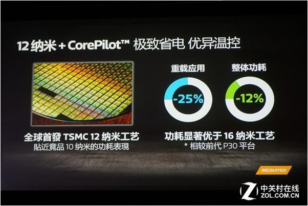 据联发科技无线通信事业部总经理李宗霖介绍,联发科P60不仅采用了12nm的工艺,还搭配了CorePilot,可以做到极致省电,接近对手10nm的功耗表现。