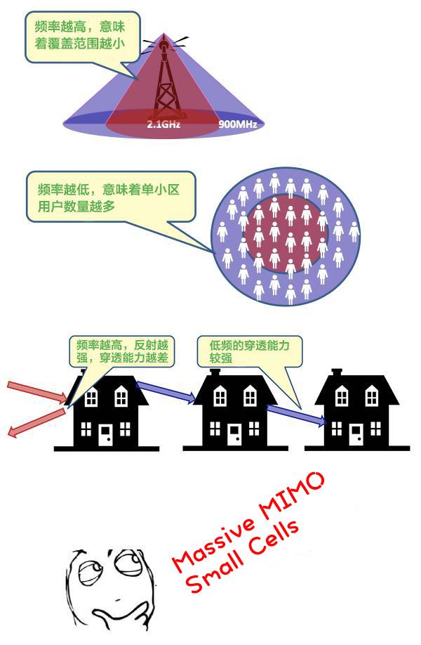 问题来了,频段越高,穿透能力越差,覆盖范围越小。