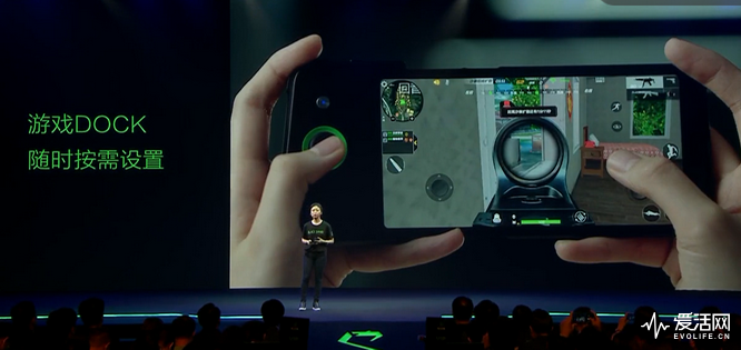 外接手柄也是一个悬念,发布会的第二部分揭晓了谜底。黑鲨游戏手机无法变身Switch,因为他们只推出单边手柄配件,横屏后左手握持手柄。