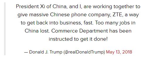 飞象网讯(马秋月/文)5月14日消息,对于中兴来说,难熬的一个月终于迎来曙光。刚刚美国总统特朗普发推特表示:“我已经和习主席努力向中国的大型电话公司中兴通讯提供快速恢复业务的途径。中国有太多的工作岗位流失了。商务部已接到指示,要把它做好!”