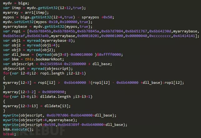 5. JavaScript 代码使用堆喷射(heap-spray)技术来获取读写内存访问权限;