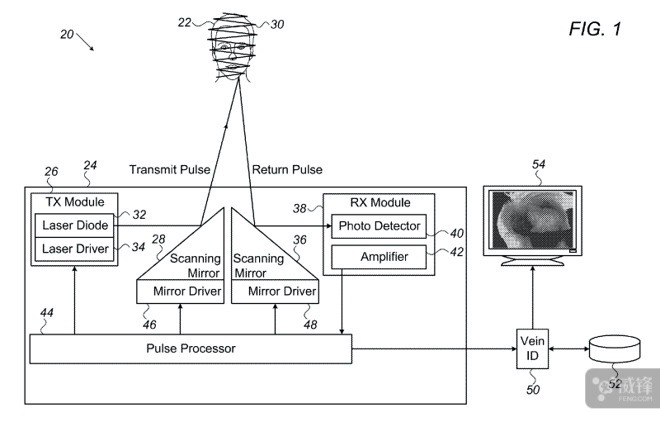 美国专利商标局昨天公开了苹果的一项专利——用脉冲辐射检测静脉成像。文件显示,该专利在2015年11月12日申请,苹果表示可以用红外线检测的原理来得到皮肤下方静脉血管的图像,然后将其用作生物识别,这样一来识别的安全性和准确性将会变得无与伦比。