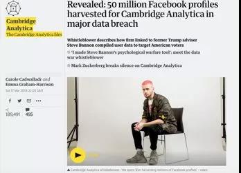 2018年3月,脸书公司卷入数据滥用丑闻。一家名为“剑桥分析”的英国公司被曝以不正当方式获取8700万脸书用户数据,这是“脸书”创建以来遭遇的最大规模用户数据泄露事件。