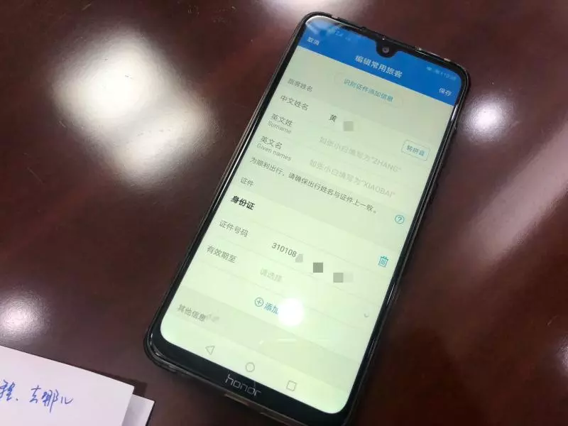 OTA应用软件使用订票、预订酒店等功能时,都需要使用个人证件号码。打开这些软件,个人无法直接看到证件号码。但是记者在某款常用软件看到,点击“查看”按钮后,手机短信会收到一条验证码,在软件上输入验证码即可显示证件号码等信息。