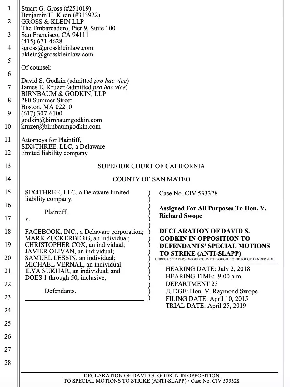 Six4Three早已解散,人们对Pikinis的记忆可能已经淡去了,但该公司的创始人Ted Kramer在2015年决定起诉Facebook,指控其违反合同以及“欺诈性和反竞争性计划”。四年了,这场官司仍在继续,它可能成为硅谷历史上最奇怪的案件之一。它的主要论点是,Facebook利用其对个人信息的控制权来损害竞争关系。