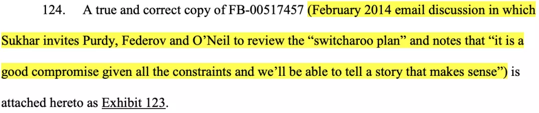另一位高管在2014年2月的一封电子邮件中邀请同事来审查“Switcharoo计划”,称它是“折衷方案”,能够“讲述一个有意义的故事”。