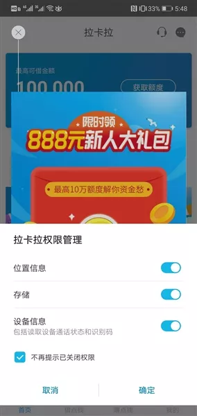 但需要注意的是,根据《信息安全技术 移动互联网应用(APP)收集个人信息基本规范(草案)》规定,金融借贷类APP为用户提供从金融机构进行个人消费贷款服务,包括授信、借款、还款与交易记录等功能(其中金融机构是指有放贷资质的银行、消费金融公司、小贷公司等在网络上提供借贷服务的机构)。金融借贷类APP的必要权限只有存储权限一个,即除了存储权限,对其他任何权限的索取都涉嫌超限索权。
