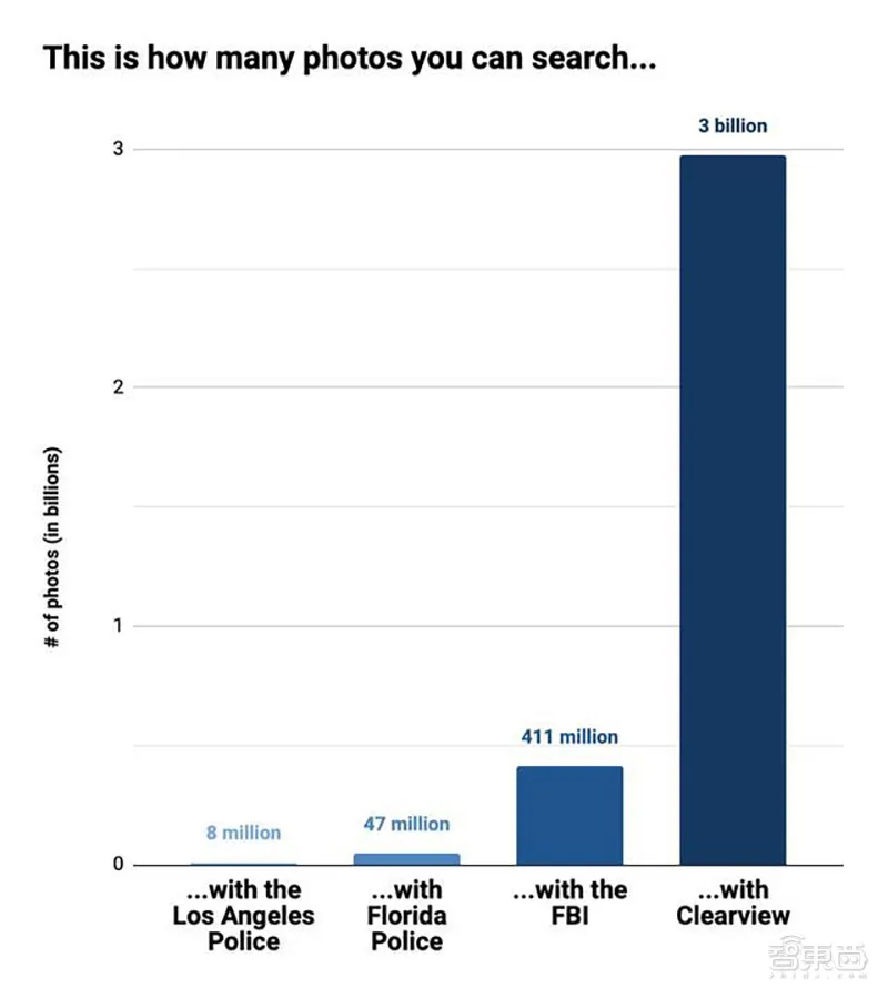 Clearview AI从Twitter、Facebook、Instagram、LinkedIn、Venmo、YouTube等各种社交平台和商用网站上,抓取了超过30亿的图像,形成庞大的数据库。