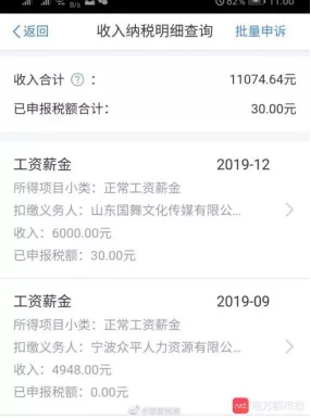 据四川在线报道,4月23日,有多名成都医学院的学生反映,近期在个税App上发现,虽然自己还没毕业,但已在成都鑫路鸿保险代理有限公司有缴税记录。一个爆料学生表示,自己“被发工资”时间为2019年3月至12月,涉及“工资”总额36352.7元。
