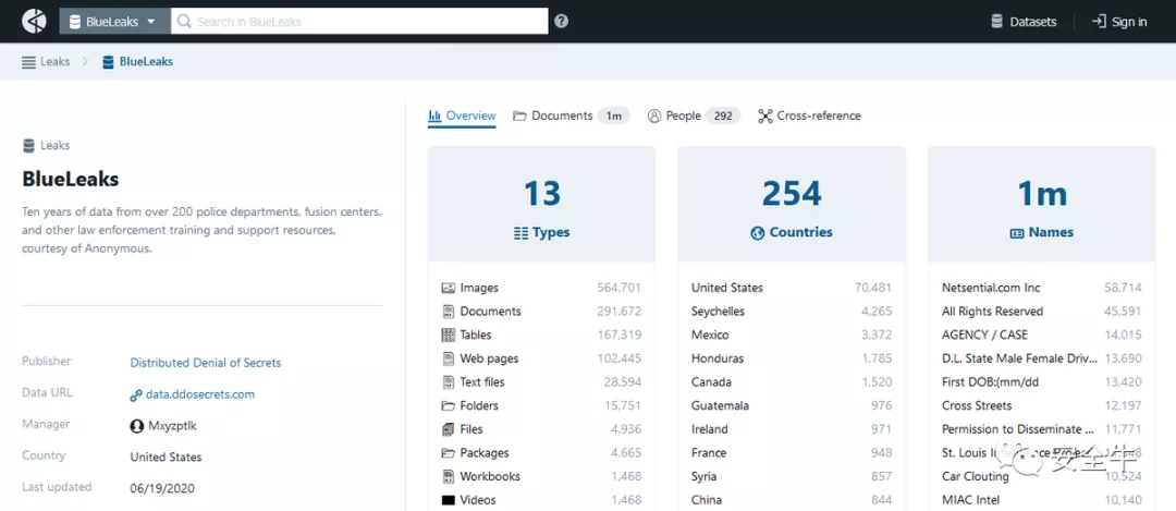根据BlueLeaks门户网站的说法,泄漏的数据包含超过一百万个文件,例如扫描的文档、视频、电子邮件、音频文件等。