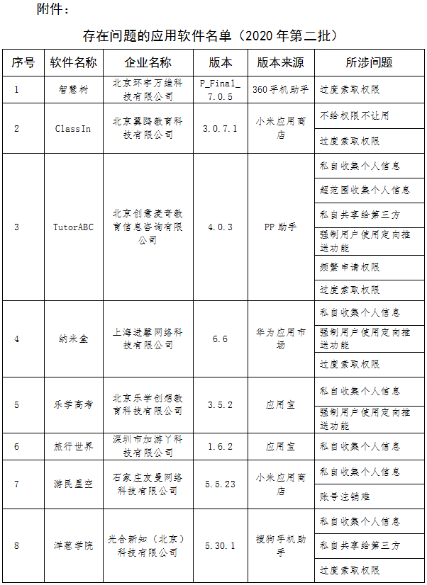 依据《网络安全法》《电信条例》《电信和互联网用户个人信息保护规定》等法律法规,工业和信息化部近期组织第三方检测机构对手机应用软件进行检查,对发现存在问题的企业进行督促整改。截至目前,尚有15款APP未完成整改(详见附件)。上述APP应在7月14日前完成整改落实工作,逾期不整改的,工业和信息化部将依法依规组织开展相关处置工作。