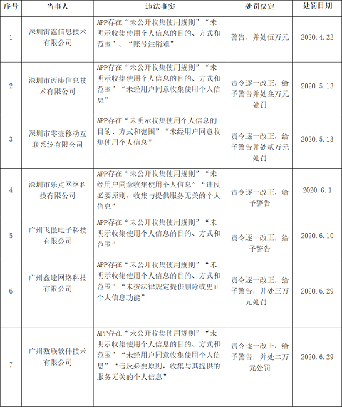 据广东省通信管理局官网消息,2020年第二季度,有七家企业因App存在违法现象受到行政处罚。
