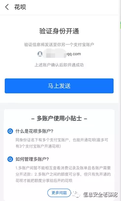 4. 以支付宝为例,子账号要开通花呗,可以通过向主账号发送申请来开通,所以对方需要登陆我原来的支付宝账号。