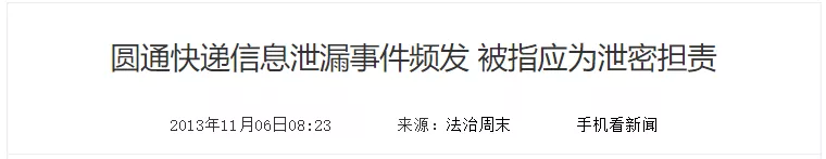 而令人无语的是,这并不是圆通首次被曝有“内鬼”发生个人信息泄露了,2013年11月,《法治周末》曾报道圆通被曝泄露快递信息